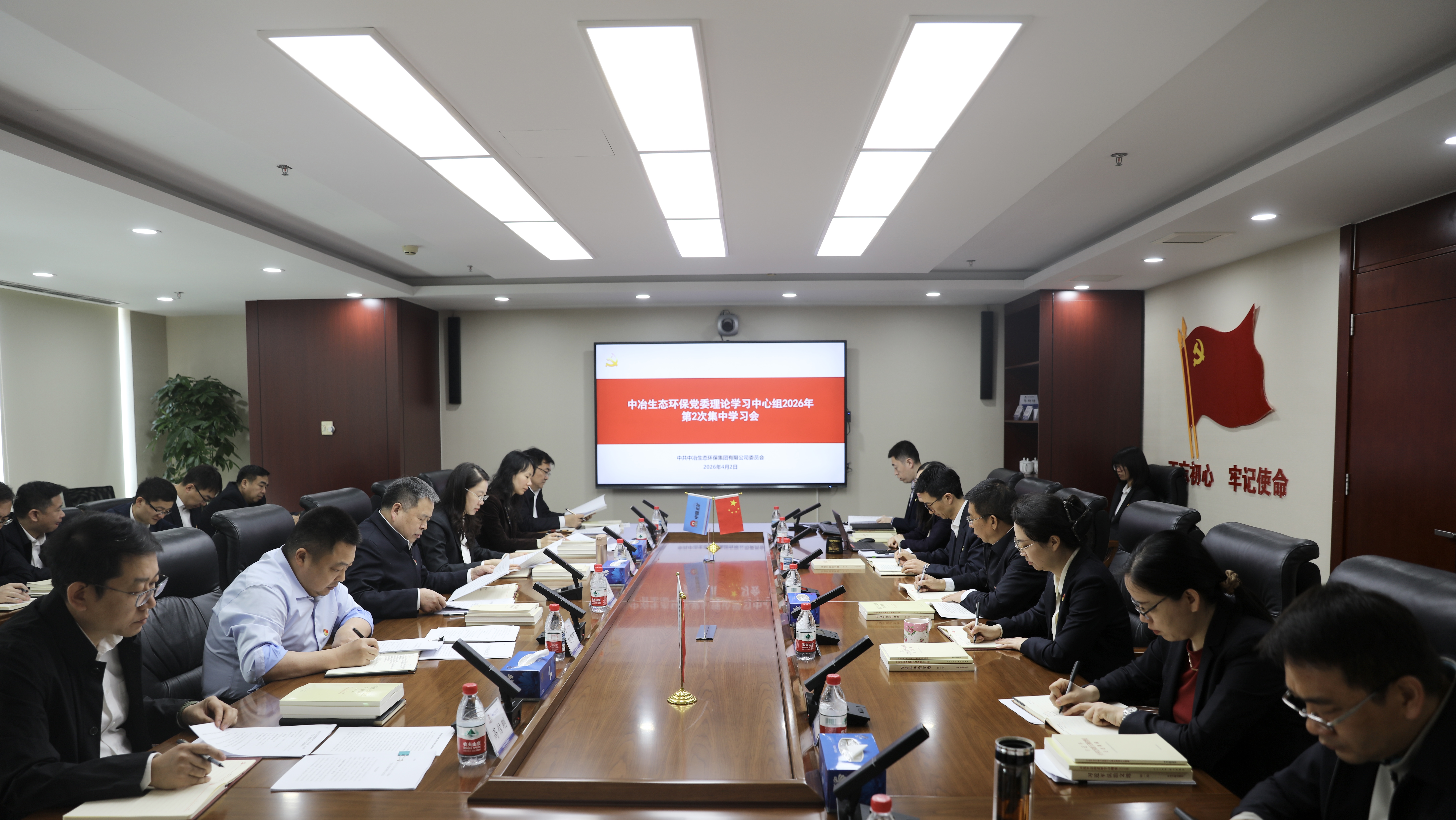 4月2日,中冶生態環保黨委召開2026年第2次理論學習中心組集中學習會,深入學習領會習近平總書記關于樹立和踐行正確政績觀的重要論述、《習近平關于樹立和踐行正確政績觀論述摘編》,全面落實“立黨為公、為民造福、科學決策、真抓實干”總要求,進一步增強樹立和踐行正確政績觀的政治自覺、思想自覺和行動自覺。公司副董事長、總經理、黨委副書記伍紹輝主持會議并講話。黨委其他成員參加學習并作交流發言。
