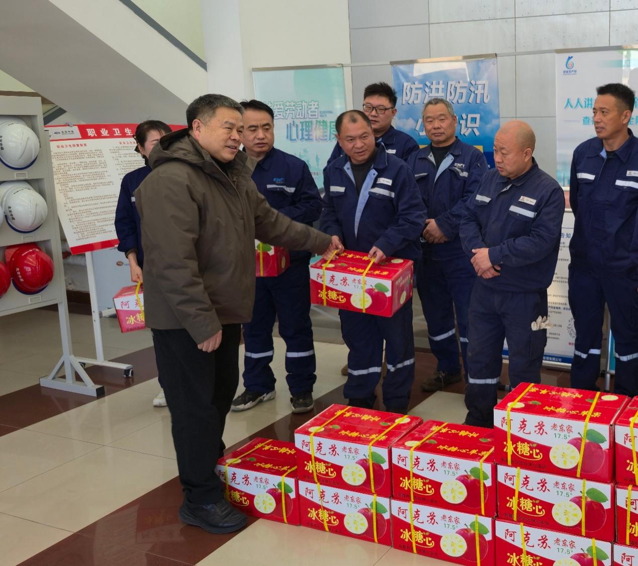 圖為伍紹輝慰問在崗員工